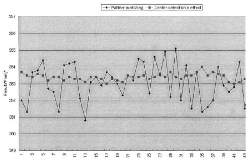 We have developed the center detection method to avoid the influence of an unstable appearance of alignment marks. The interim report is as follows.