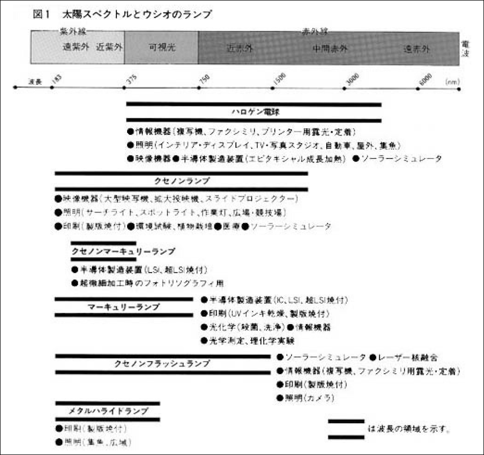 - (1)熱幅射光源…電気エネルギーを熱エネルギー(例えばジュール熱)に変換し、固体の温度を上げ、その温度に相当する輻射線を利用する光源。〈例〉フィラメント電球(一般白熱電球、ハロゲン電球)
