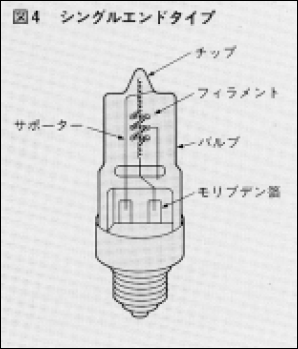 なお、低電力化した複写機露光用ハロゲン電球として、外径6Φ(従来8Φ)の細バルブが、世界に先がけて、ウシオによって開発量 産されています。これもハロゲンサイクルが有効に動作するよう適正なバルブ温度を保つための工夫の一つです。