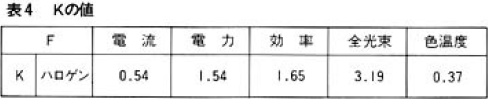 表4は、Kの値を示しています。(但し、電球の構造によってKの値は若干変化します。)図15にその関係を図示します。
