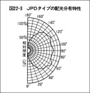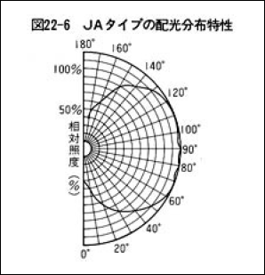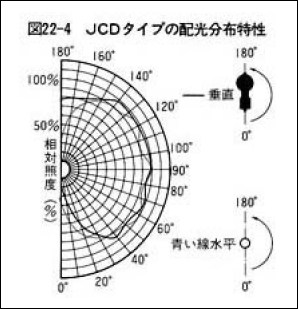 ハロゲン電球を組み込む照明装置は、それぞれの配光分布特性を考慮して設計されます。各ハロゲン電球の配光分布特性を図22に示します。