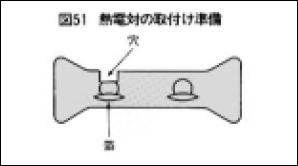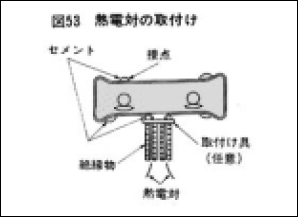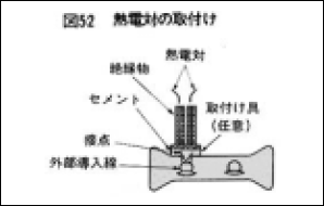 固定方法 …熱電対の接点は、露出した外部導入線と、確実に接触させ、接点の上からセメントを充填します(図52)。