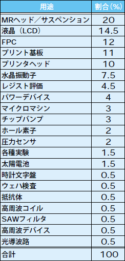 用途別販売実績を表2-1に記載する。