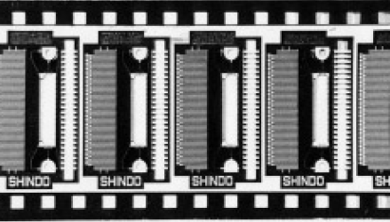 1980年代のなかばになるとTCPはASIC用の多ピン時代を迎えた。当初は200~300ピン、次いで300~500ピンそして近年には500~900ピンまで多ピン化されている。ASICの多ピン製品はスライドキャリア(図2-18)にいれて個別にアッセンブリ工程を流す方式も採用された。