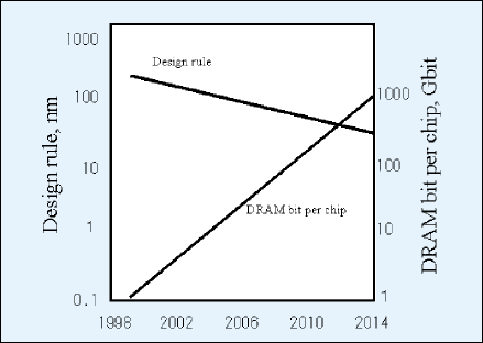 LSIの速度、容量、多機能化の付加価値追求、半導体メーカの生産性向上、セットメーカの「軽薄短小」に対する要求等々がドライビングフォースとなり技術を進歩させ、一定期間(概略4年毎)にデザインルールの変更がなされ、メモリ容量は一桁アップしてきている。