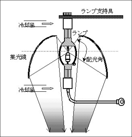 ⑪ ランプの周囲(灯具)を冷やす冷却風の強さは、ランプの発光に擾乱(例えば、水銀の未蒸発)を起こさない範囲とする。