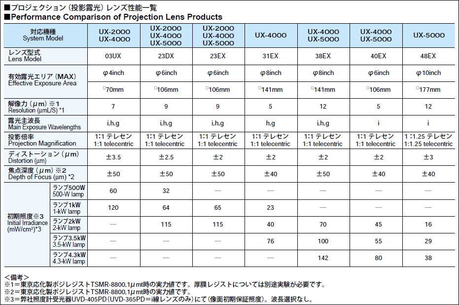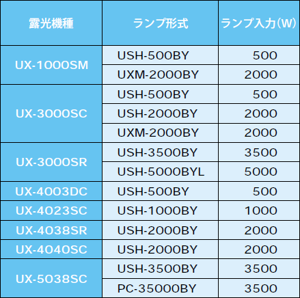 その他にも多くの事項があるが、ここでは省く。ウシオの代表的な露光機とそれに搭載されるランプの例を表4-1に紹介しておく。