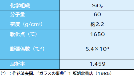 バルブは必要な波長帯域の光を透過させ、点灯時高温にさらされることにより、耐熱性が要求される。石英ガラスは少なくともこの条件を満たし、加工性にも富む。石英はガラスの中で不純物の少ないガラスに属する(作花済夫編“ガラスの事典”朝倉書店、1985を参照)。透明石英ガラスの一般的な物性値を表4-3に示す。