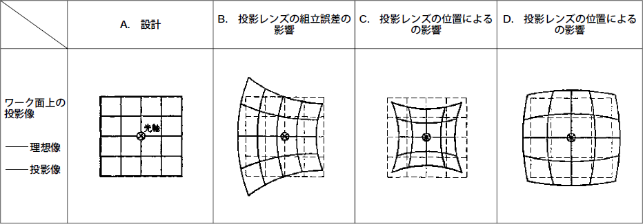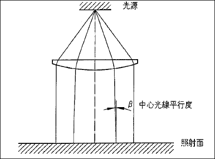 超高圧水銀ランプから放射された光強度の各方向での分布は、配光分布で表わされる。配光分布を円柱座標でみると、一般に径方向に対しては軸対称の分布であり、軸方向に対しては陰極側に高い照度で陽極側に低い照度の配光分布を持っている。