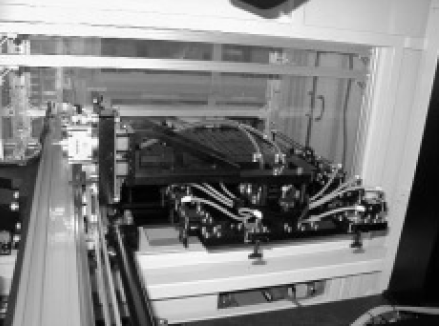 最近では表裏配線化、多層化、テープの薄膜化が進みプロセスも多重複雑化している。それによりテープの変形も大きくなってきている。テープ変形は露光ステージでの吸着不良による露光性能の悪化をまねくだけではなく、アライメント性能に対しても悪影響をおよぼす可能性がある。そのため真空吸着の大容量化、吸着ステージ部にテープ押え機構やフィルムガイドを設置するなどの対策を行ない、吸着安定性とアライメント安定性を確保している。
