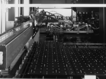 この搬送方式では、吸着の大容量化、テープ押え機構、フィルムガイドなどによりテープ変形を押さえ吸着不良を防止している。また、搬送はノーテンション搬送であり、蛇行修正はアライメント動作を利用することで対処している。