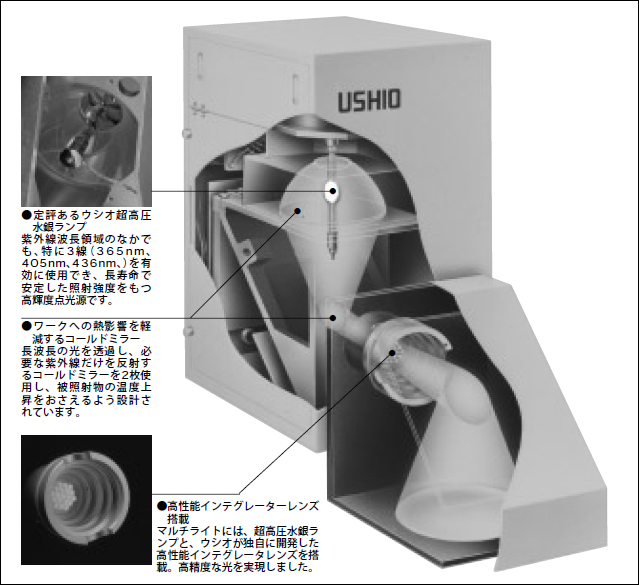 UI灯具の『UI』とは「Ushio Illumination」の略で、高輝度光源装置のことである。