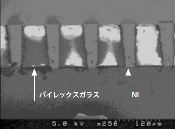 図6-4 パイレックスガラスのDRIEによるフィードスルー配線投影露光