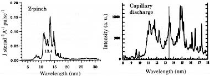 Fig.5 EUV spectrum from Z-pinch28) and cappillary discharge.29)