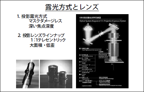 このような装置を開発するにあたって、我々の固有技術として投影レンズがあります。投影レンズというのは大きな虫眼鏡のようなもので、等倍もしくは倍率を変えてマスク像を投影レンズに対して下の方向に結像させるという機能があります。