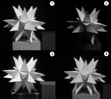 光に関する展示物は、「光と人のふれあい」のスペースに、「光とプリズム」「光ファイバー」「ホログラフィー」「幻の像」などの展示があります。中でも興味深かった展示のひとつに「光の仲間」と題した展示があります。この展示は色彩豊かなオブジェを「①白熱灯」「②蛍光灯(紫外線灯)」「③水銀灯」「③ナトリウム灯」の4種類の異なる光源で照らし、その色彩の見え方(演色性)を体験できる展示です。