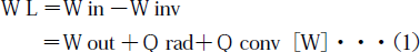 希ガス蛍光ランプの点灯駆動には高周波高電圧のインバータを使用した。そこでランプに入力された電力WLのゆくえ、いわゆるエネルギーバランスを考察した結果を図2に示す。これを数式にしたものが(1)式である。