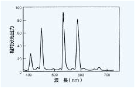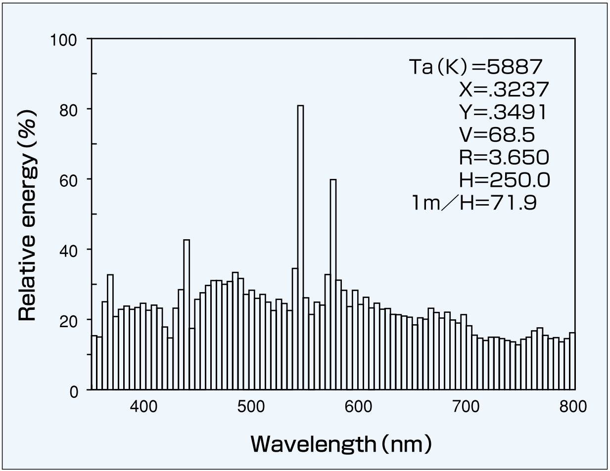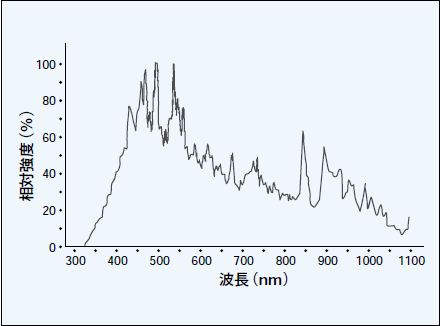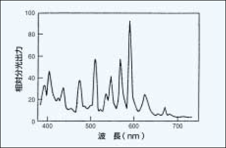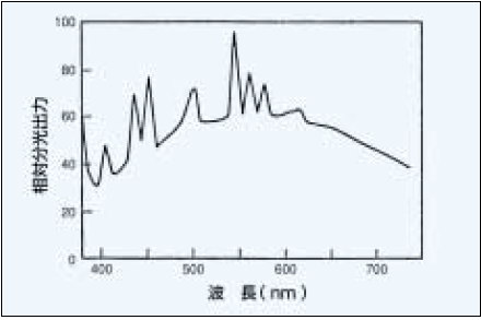 可視光領域において太陽光の分光分布に非常に似ており、演色性がよい。