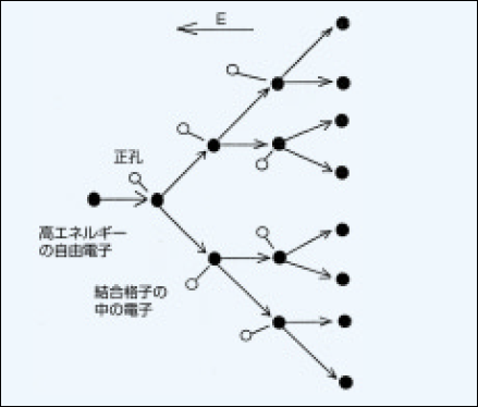 これらの方法で飛び出してきた電子が加速され陽極に向かいながら図4-2のように次々と電離と励起を起こし、電子なだれが発生し放電が開始していく。キセノンランプではイグナイタと呼ばれる高電圧の発生装置(約30kV)で電極に強電界をかけて電子を飛び出させる。この電子によって次々に発生した電子あるいは陽イオンが電極に衝突することによって、電極に熱を与えさらに多くの電子を飛び出させることになる。