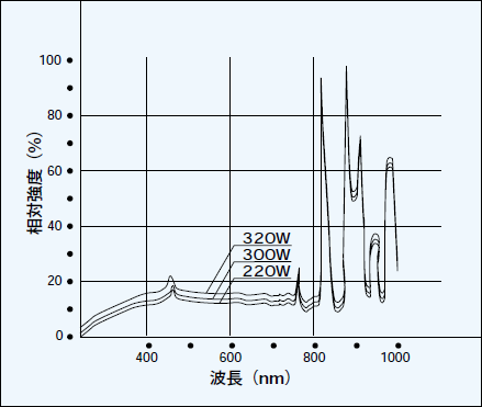 電気入力の変化に対して分光分布が一定であることもキセノンランプの特長である。
