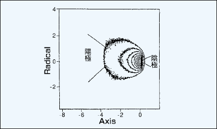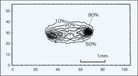 図4-78に外部電極式希ガス蛍光ランプの径方向の照 度分布を示す。図4-78よりアパーチャの開口部を中心 に高い照度が得られることがわかる。