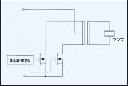 図4-80 急峻な立ち上がり、立ち下がりを有する波形フライバック点灯方式 回路例