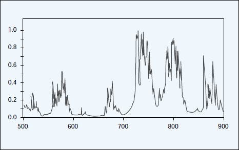 イエローグリーンのランプはモノクロ読み取り用でホワイトのランプはカラー読み取り用である。ホワイトのランプについては、赤、緑、青色蛍光体の比率を変えることにより、CCDの感度曲線に合った発光スペクトルにすることが可能である。発光スペクトルを見てわかるように、わずかではあるが、800~1100nmに赤外域の発光がある。このため、カラー用読み取り光学系では赤外カットフィルターが必要とする場合がある。