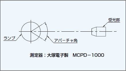図4-73は分光特性の評価方法である。分光器は大塚電子製MCPD-1000である。通常、分光特性はランプを点灯させ、光量が安定した3分後の値の評価を行う。