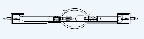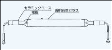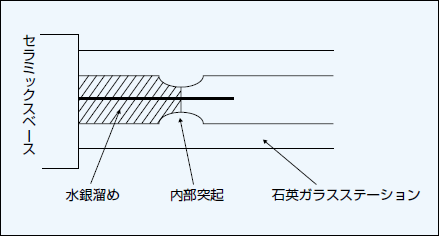 電極にモリブデン箔を溶接し、その箔を発光管の石英ガラスで封着し、膨張係数の差による応力をモリブデン箔の塑性変形で緩和し、気密を保ったもの。