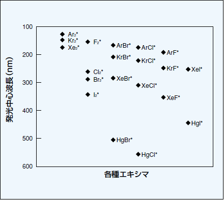 波長180nm以下のVUV(真空紫外線)を効率良く発光可能。 - ②実質的に単一波長に近い