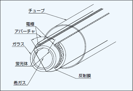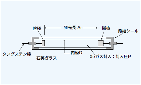 電力から光へのエネルギー変換効率が高く(172nmで10~40%)、低電力でも大きな光エネルギーを発生。 - ④瞬時点灯、点滅点灯が可能