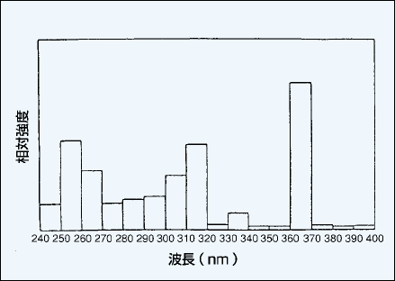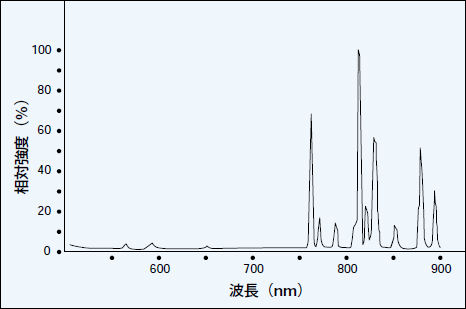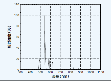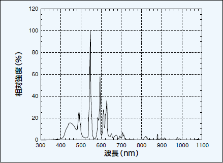 可視光領域において太陽光の分光分布に非常に似ており、演色性がよい。