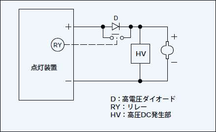 - a.ランプ端子間に高電圧を重畳し、絶縁破壊を発生させ、放電路を形成する。
