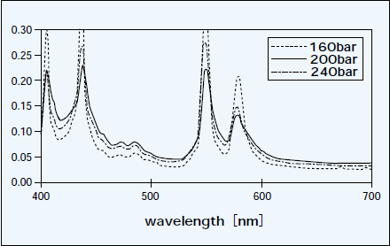 図4-73は分光特性の評価方法である。分光器は大塚電子製MCPD-1000である。通常、分光特性はランプを点灯させ、光量が安定した3分後の値の評価を行う。