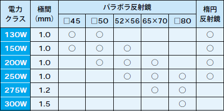 なお、このランプへの投入電力は、前述のようにコンデンサに類似した電圧-電流の位相がずれること、およびランプに印加される電圧が2,000V0-P程度であることから簡易な方法で測定することができない。このため電力としては点灯装置の入力電力で表記する。