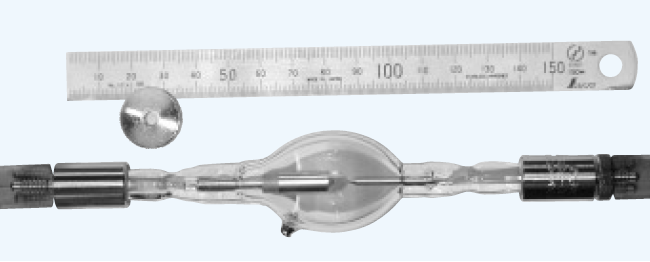 空冷キセノンショートアークランプの最大入力は10kWで、それ以上の入力を必要とする場合は、水冷式キセノンショートアークランプを用いる。水冷式では入力30kWが実用化されている。水冷を行うのは、ランプの外部ではなく、陰極と陽極の内部である。