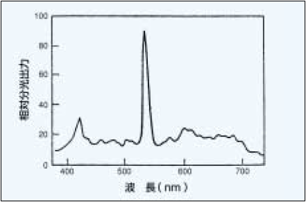 図4-76、図4-77に発光色がイエローグリーンとホワイトのランプの発光スペクトルを示す。