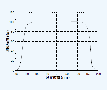 図4-75にA3タイプの外部電極式希ガス蛍光ランプの照度分布特性を示す。一般的にA3原稿を読み取る場合、有効な露光長さ(有効発光長)は±150mmである。この時、原稿面の±150mmの照度はランプ中央照度より低下し、縮小光学系の場合、レンズ透過後のランプ端部の光量はレンズのCOS4則に従って更に低下する。このため、両端の光量を中央よりアップさせた照度分布特性が望まれる。