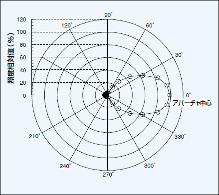 図4-78に外部電極式希ガス蛍光ランプの径方向の照 度分布を示す。図4-78よりアパーチャの開口部を中心 に高い照度が得られることがわかる。