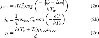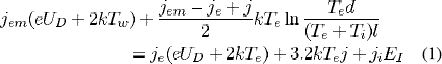 After solving the nonlinear equation for given potential U and cathode surface temperature Tw, the net current density (j = jem + ji - je) and the net energy flux from the plasma to the cathode(q = qe + qi - qem) are calculated. Expressions for the energy flux components are as follows: