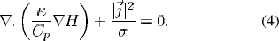 and σ are the thermal and electrical conductivity respectively;Cpand H are the heat capacity and enthalpy respectively;