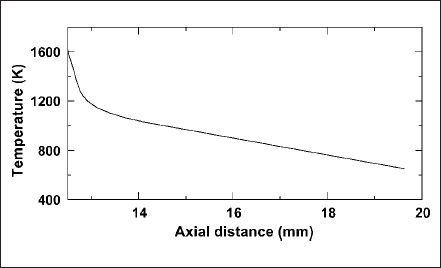 Back and forth iteration between plasma and anode domains is done for unaltered temperature distribution at the anode-plasma interface. Fig. 3 depicts the temperature distribution obtained along the axial direction of the anode surface. This distribution is used as boundary condition in the last step of plasma solution.