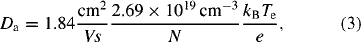 where kB is Boltzmann’s constant and e is a unit charge. In order to solve equation (1) precisely it is necessary to couple this equation into a more complete discharge model as was done in the companion paper (Lister et al 2004). However, a first order analysis can be performed by assuming that the radial distribution of Hg+ ions is described by the lowest spatial mode for ambipolar diffusion. This approximation yields