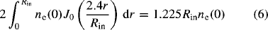 The result at 6.0 A in figure 6 was checked using a 70 GHz microwave interferometer. An electron column density of 9.64 ×1012 cm-2 was measured at 6.0 A across one arm of the discharge tube using the microwave interferometer. In order to compare this ‘cross tube’electron column density with the result for 6.0 A in figure 6, a radial distribution must be assumed. The equation