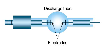 Fig.5 Photographs of discharge tube of Hg (A) and Ge (B) lamps