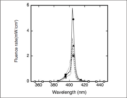 Table 2. Fluence rate of lamp light sources at405 ±10nm