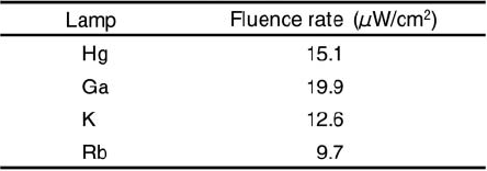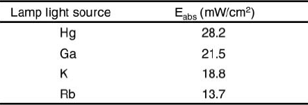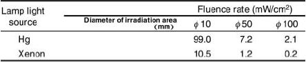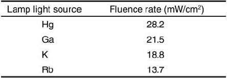 Table 3. Fluence rate of Hg and Xenon lamp light sources