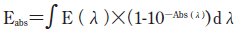 PpIXの励起に対する各ファイバ型ランプ光源装置の有効性を、全光エネルギー吸収度(absorption photon energy、Eabs)を用いて評価した。Eabsは、化合物に光照射した際、その化合物による光エネルギーの吸収効率を表し、Eabsが大きいほど、照射した光エネルギーが効率よく化合物に吸収されることを意味する。さらにEabsは、波長λにおける光の分光放射照度E(λ)と化合物の分光吸光度Abs(λ)とを用いて次式で表される12)。