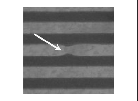 しかし、ファイン化が進んだ現在、配線幅は15µm程度となっており、その中で「細り」・「太り」・「欠け」・「突起」の良否を人間の目により判別するのは限界に近付いてきた。