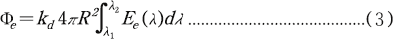 ランプから放射されるパワーをφeとし、発光スペクトルの測定結果から次式より求めた。